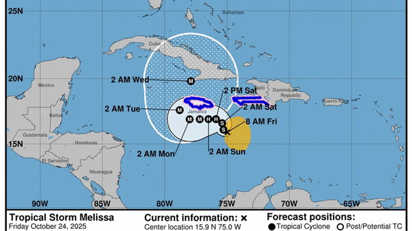 “Once Melissa’s structure improves, environmental conditions still appear favorable for a period of rapid intensification,” forecasters wrote in the 11 a.m. update Friday.
