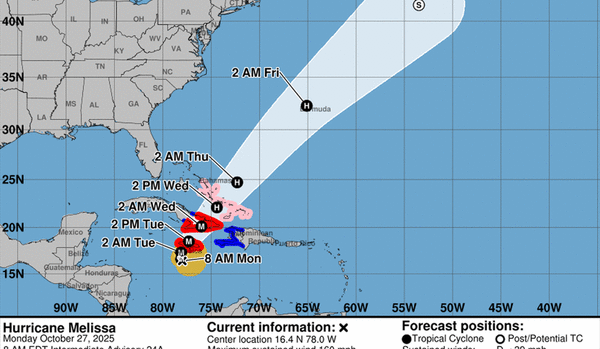 “A painstakingly slow turn toward the northwest and north is expected during the next 24 hours, and Melissa is forecast to make landfall on the south coast of Jamaica Tuesday morning and emerge off the north coast by Tuesday afternoon,” the hurricane center wrote in the 5 a.m. Monday update.