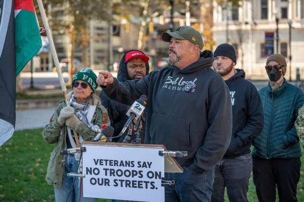 Ryan Harvey, who is not a veteran but works for the Baltimore Rapid Response Network, emphasized the importance of veterans speaking out against what they perceive to be an abuse of power by political leaders and those in service.