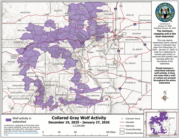 While some wolves continue to move broadly, the wolves that make up the state’s four packs have established territories and are not roaming as widely, according to CPW.