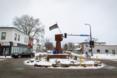 Few people gathered at the memorial Sunday morning, but real and fake flowers, blanketed by snow, covered the site. A family with children got out of an SUV and walked around. A young photographer snapped some shots. And a couple took their time weaving through the makeshift garden.