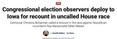 That observation function is not hypothetical. The committee has publicly announced deployments of congressional observers to watch recount processes in tight House races throughout the country.