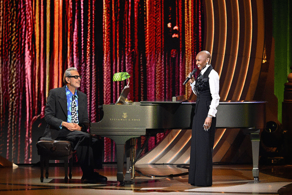In the closing number, Grande and Erivo sang "Get Happy/Happy Days Are Here Again," a duet originally sung by Judy Garland and Barbra Streisand. The medley has an infectiously optimistic spirit and a soaring melody.