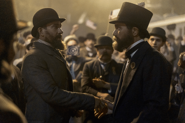 The series features other recognizable faces as figures of the day, including Betty Gilpin (“GLOW”) as first lady Lucretia “Crete” Garfield; Shea Whigham (“Mission: Impossible – The Final Reckoning”), as scheming congressman Roscoe Conkling; Nick Offerman (“Parks and Recreation”), as Conkling’s partner in political crime, Chester Arthur; and Bradley Whitford (“The West Wing”), as congressman and eventual Garfield Ally James Blaine.