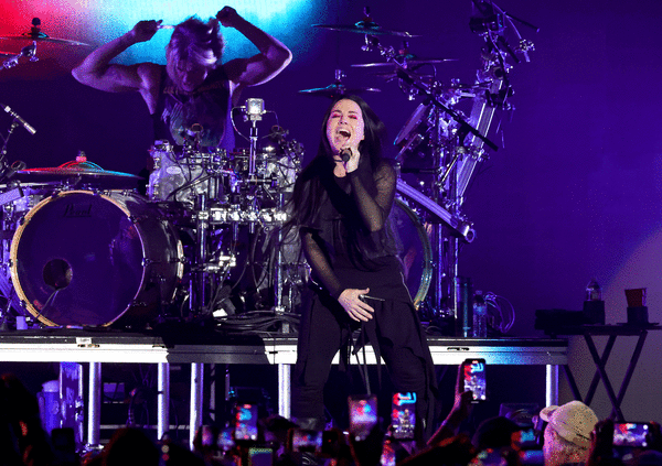 ANAHEIM, Calif. — As roadies rolled a grand piano onto the stage midway through Evanescence‘s set, singer Amy Lee smiled at the fans that packed the Kia Forum for KROQ‘s 34th annual Almost Acoustic Christmas show and let slip her other reason to celebrate on Saturday.