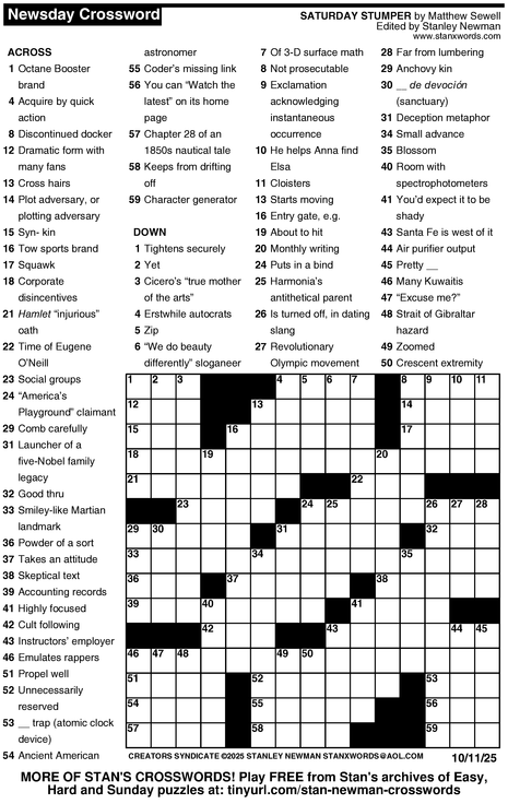 Crossword for 10/11/2025