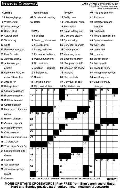 Crossword for 10/30/2025