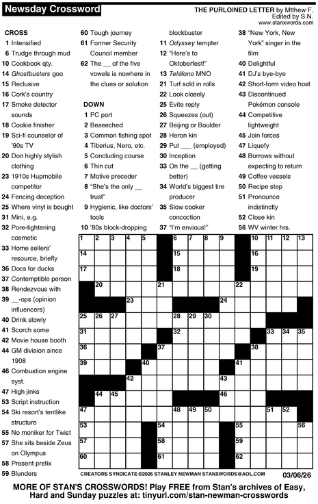 Crossword for 3/6/2026