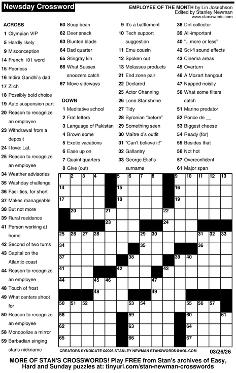 Crossword for 3/26/2026