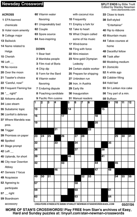 Crossword for 3/27/2026