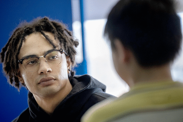 Crawford, who is Black and wears his hair in locs, feels a natural connection with students, including twins who he says are obsessed with their own locs: “They just love that they have the same hair as me,” he said. “And I’m not even their day-to-day teacher. They just come in and we hang out. We talk.”