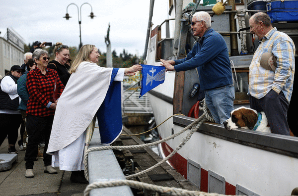 SEATTLE — At the water's edge, Pastor Mary Elise Scott led a group in prayer for a safe and bountiful fishing season.