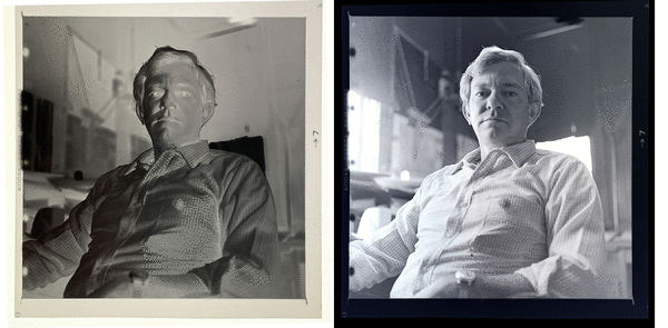 The accompanying image is a photo of my father-in-law. My wife shot the picture on a medium format camera for a college project. I photographed the negative with my iPhone and you can see how the photo turned out after inverting the image in Photoshop.