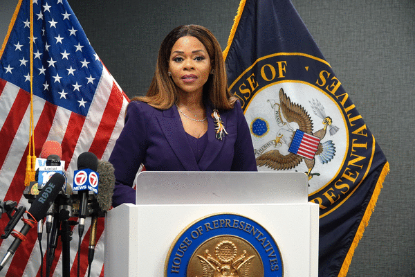 “The federal government and DOJ decided to indict a Black Democratic congresswoman without giving her attorneys the opportunity to meet with them and to discuss the circumstances,” lawyer Lauren Krasnoff told a group of reporters and photographers.