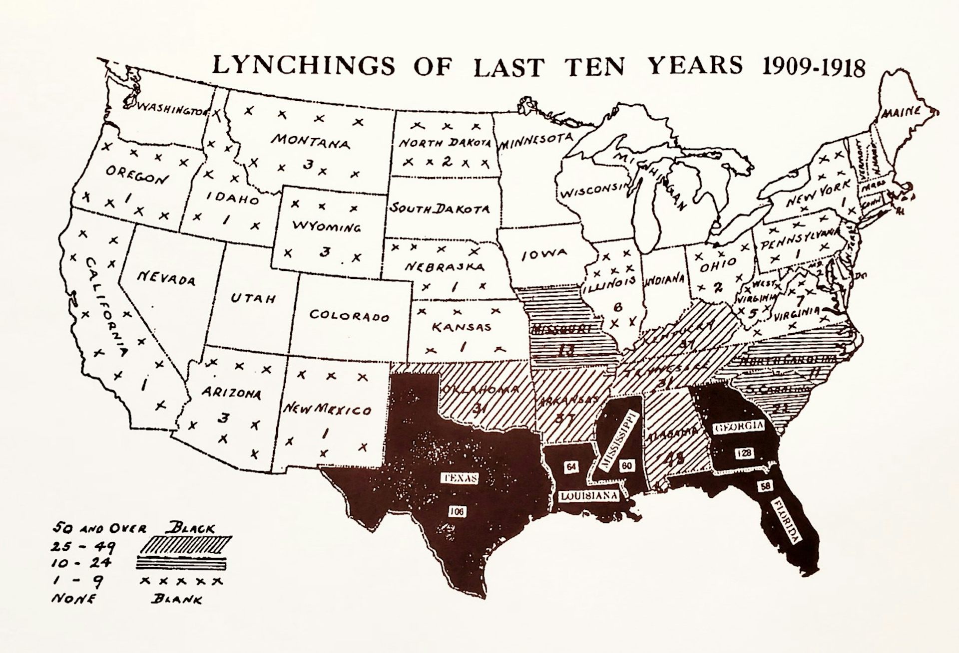 In the early 20th century, anti-lynching crusaders at the NAACP and Tuskegee Institute stirred public outcry by producing statistical reports that informed original hand-drawn maps showing the location and frequency of African Americans murdered by white lynch mobs.