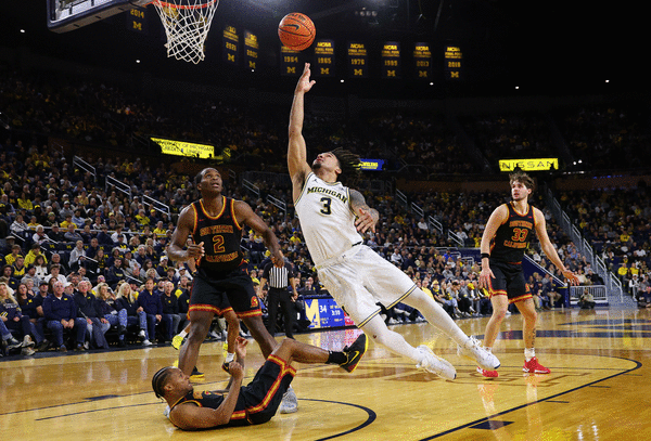 Michigan’s defense was dialed in from the jump. The Wolverines forced turnovers on USC’s first three possessions, including two steals by Mara. One of Mara’s came out on the perimeter when he stripped the ball away from Baker-Mazara that led to a fast-break dunk for Lendeborg.