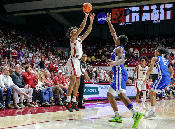 Nine of the 10 Crimson Tide players who played in the game attempted at least one 3-point shot, and five made at least one. Backup forward Houston Mallette supported Holloway’s sizzling 3-point shooting by going 4 of 6 on treys.