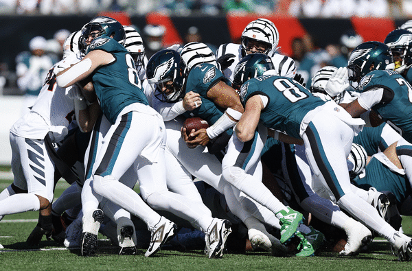 The Eagles offensive line came under fire for committing what appeared to be false starts on the play, including during a Week 2 win over the Kansas City Chiefs that featured seven Tush Pushes.