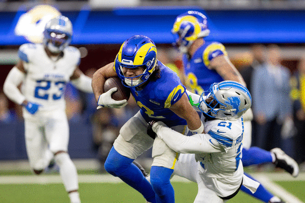 Williams and Blake Corum have become quite the tandem in the backfield, with Corum becoming at least a co-star as the two alternate series and both stay fresh. Sunday Williams carried 15 times for 78 yards and two touchdowns. Corum carried 11 times for 71 and one score, along with a 24-yard run around left end that set up the Rams’ final touchdown of the day, Stafford’s 11-yard toss to Parkinson with 4:49 left.