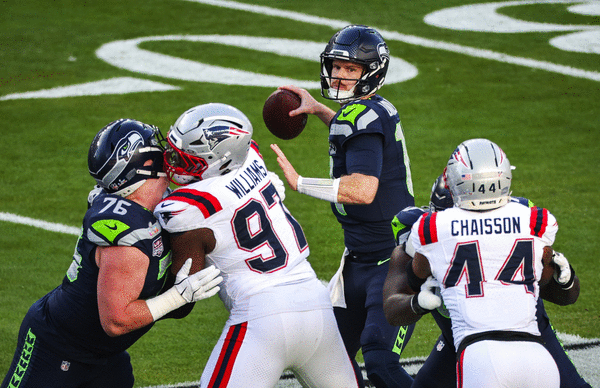 The Seahawks allowed just 33 yards rushing on 11 attempts, 11 of those coming on a scramble by Maye on a second-and-20 play. Running backs Rhamondre Stevenson and TreVeyon Henderson had just 23 yards on nine carries.