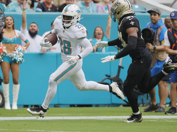 His 1,350 rushing yards in 2025 rank third among Dolphins single-season totals, behind Ricky Williams’ 2002 and 2003 campaigns. With 1,838 scrimmage yards last year, that’s No. 2 among Dolphins running backs.