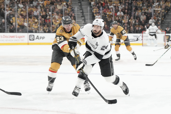 The Knights led 5-3 in the third period but Los Angeles rallied in the final 8:21 with goals by left wing Trevor Moore and defenseman Brandt Clarke to send the game to overtime.