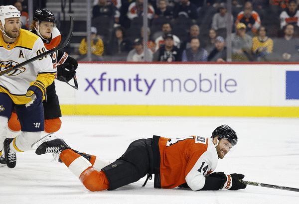 Sean Couturier goes down, but Flyers battle to send Predators out and win third straight